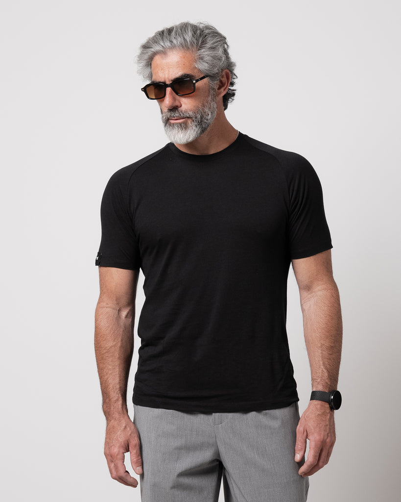 Das Base Shirt vereint zeitloses Design mit höchstem Tragekomfort. Der Regular Fit und die modernen Raglan-Ärmel sorgen für eine sportlich-entspannte Silhouette, während die hochwertige Lyocell-Faser dem Shirt eine leichte, fließende Haptik verleiht. Das atmungsaktive Material macht es zum perfekten Essential für warme Sommertage. Gefertigt in Portugal.